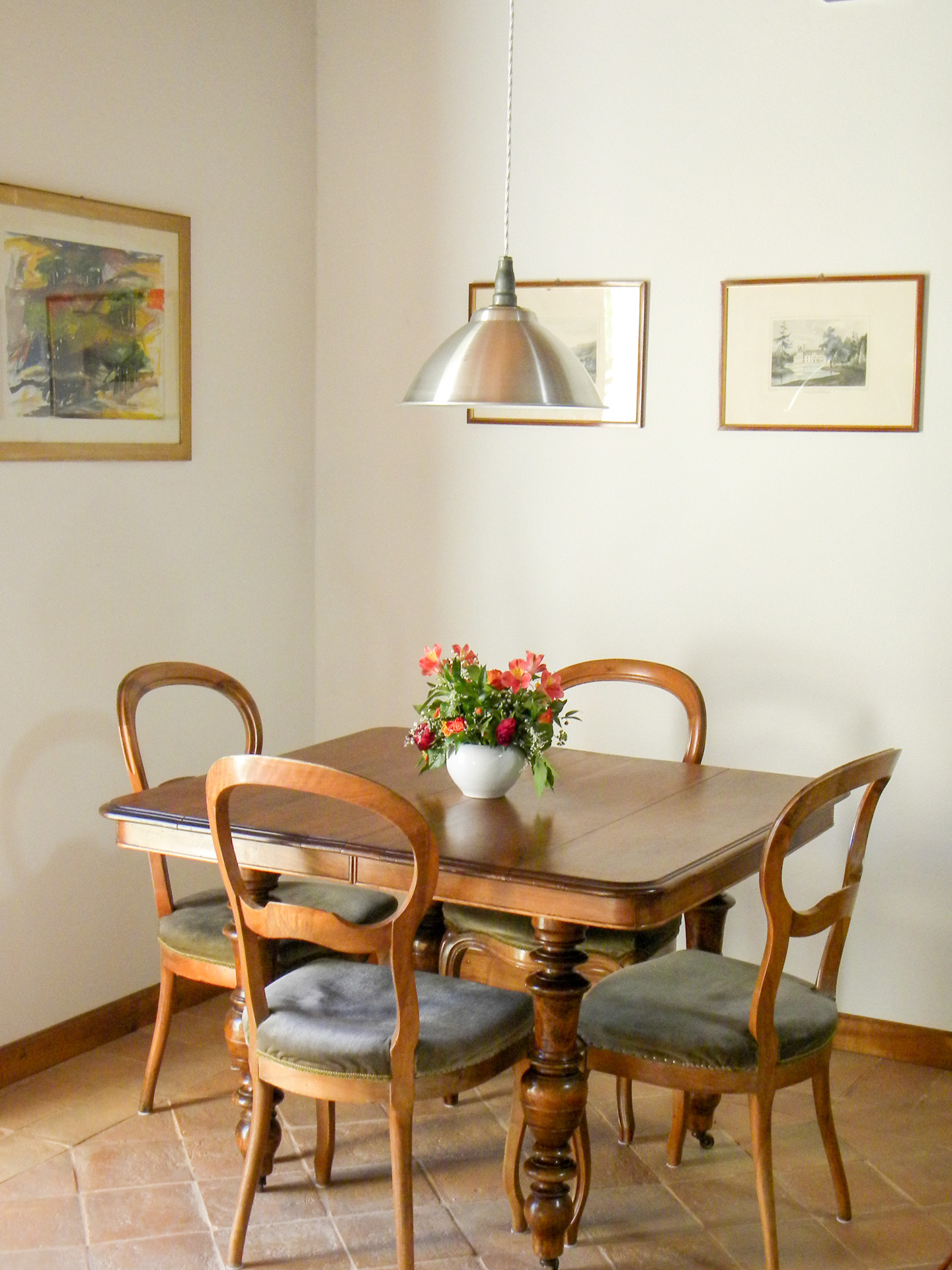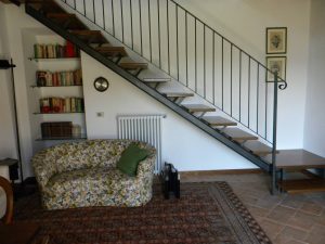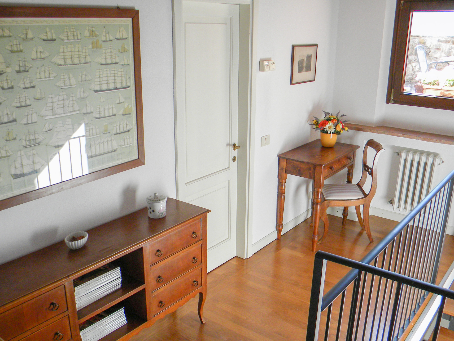L'appartamento Torretta, il più piccolo tra i due, è di 55 mq e si sviluppa su tre livelli. Si compone di una zona giorno con una cucina completamente attrezzata al piano terra, un ampio bagno con vasca al piano intermedio ed una camera per due situata nel sottotetto con aria condizionata. Tutte le stanze sono arredate con mobili caratteristici. Davanti all'appartamento avrai uno spazio privato in giardino, dotato di tavolo, sedie ed ombrellone.